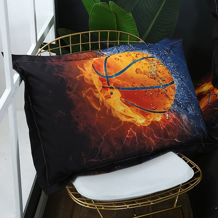 Meilleure vente Amazon : Parure de lit (housse de couette et draps), draps de lit imprimés en 3D avec motifs de football et de basketball.