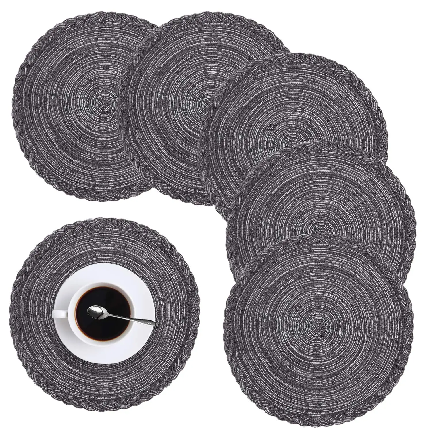 Lot de 4 sets de table ronds pour table à manger, tapis de table de cuisine en coton tissé résistant à la chaleur et antidérapant, 14 pouces, faciles d'entretien #