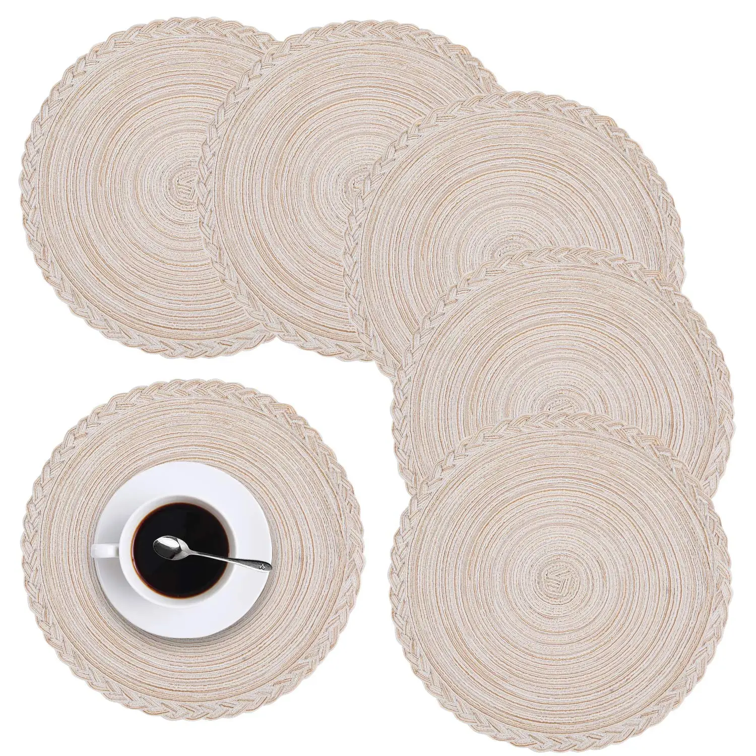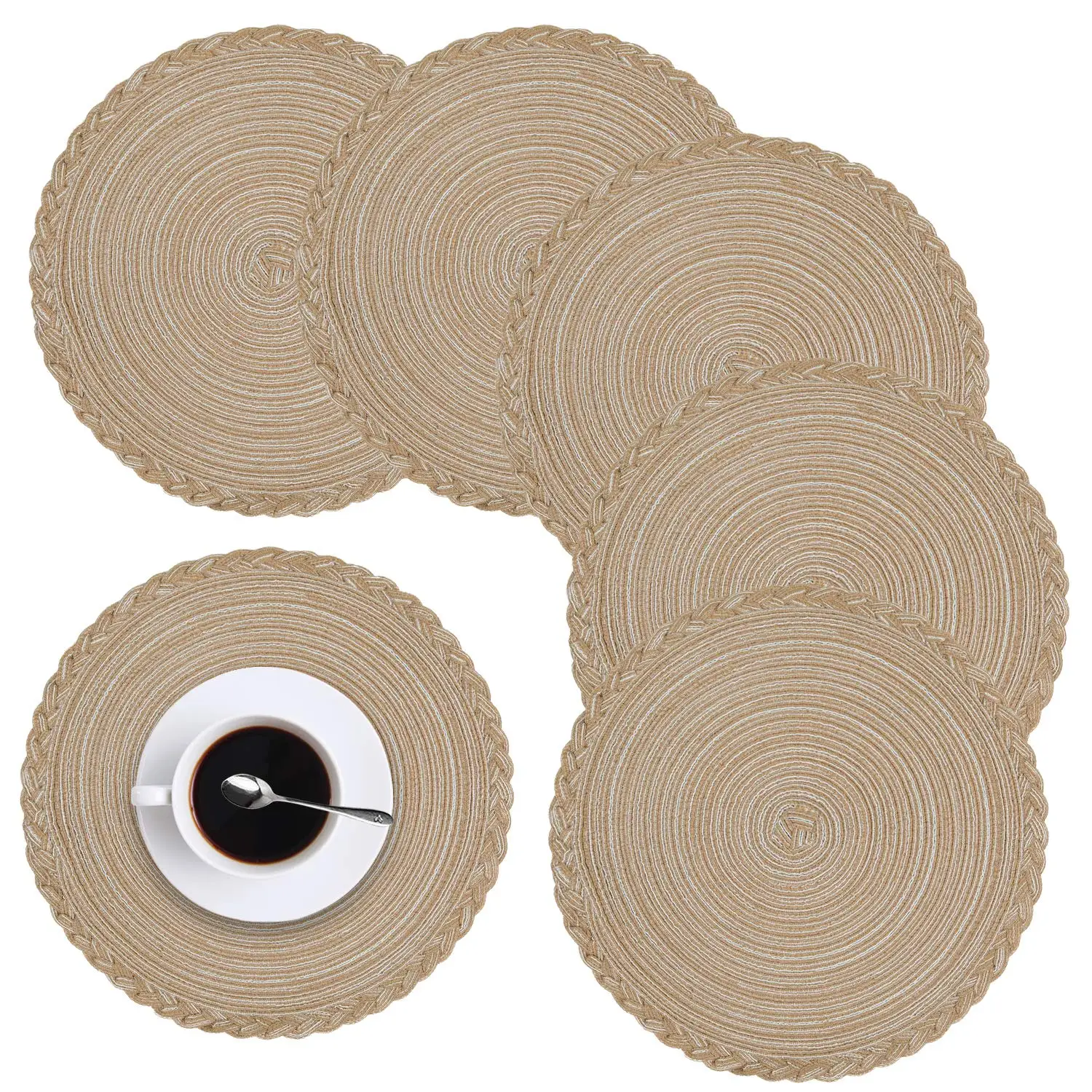 Nom du produit : | Lot de 4 sets de table ronds pour table à manger, tapis de table de cuisine en coton tissé résistant à la chaleur et antidérapant, 14 pouces, faciles d'entretien # |