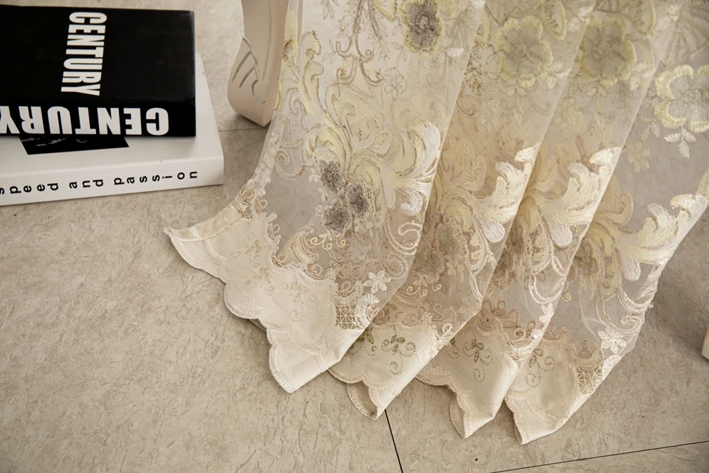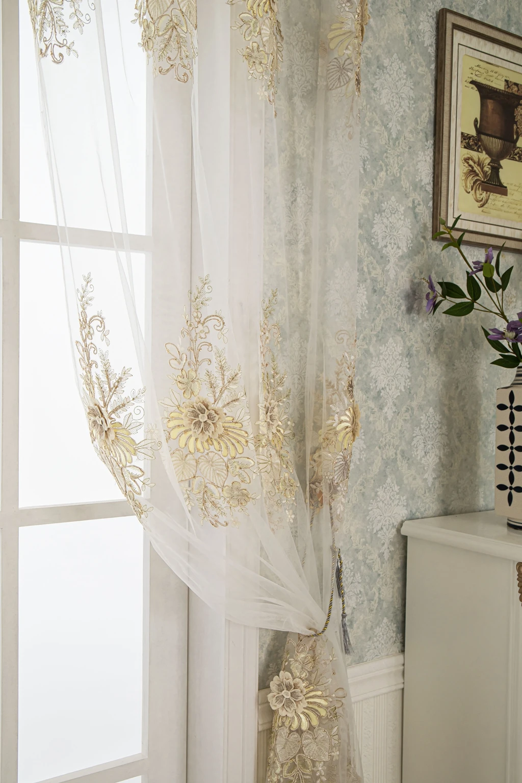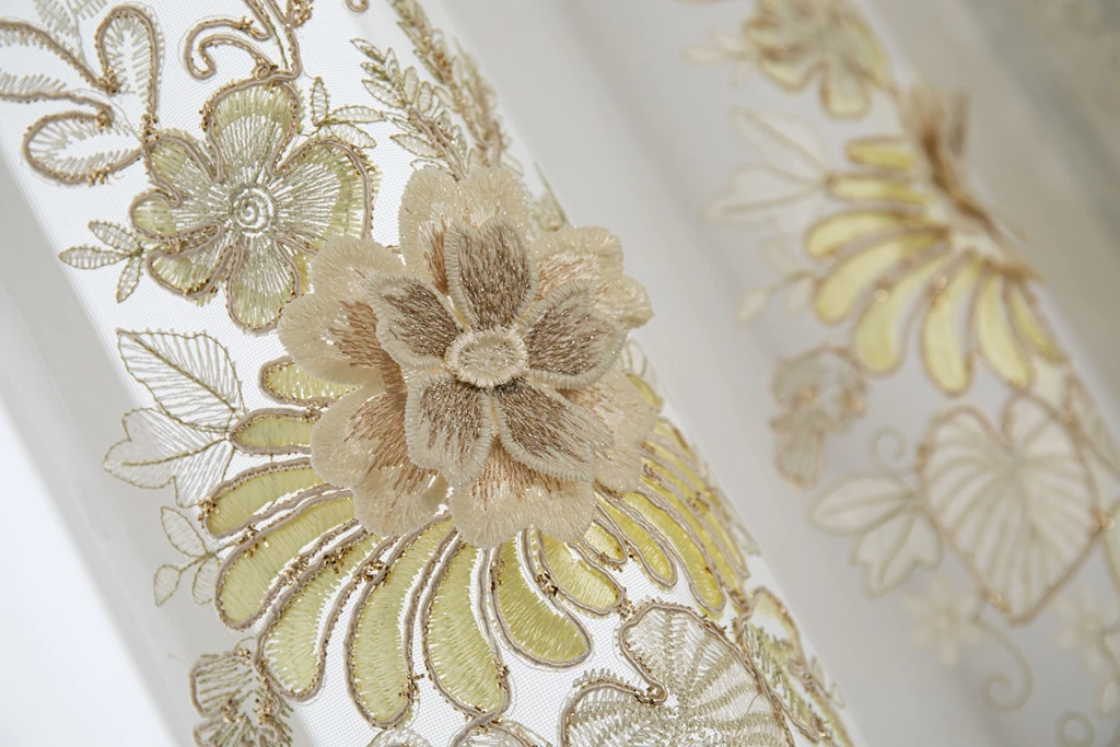 Tissu de rideau transparent Shaoxing Textile, rideau de fenêtre en tissu transparent de luxe de style européen avec broderie blanche #