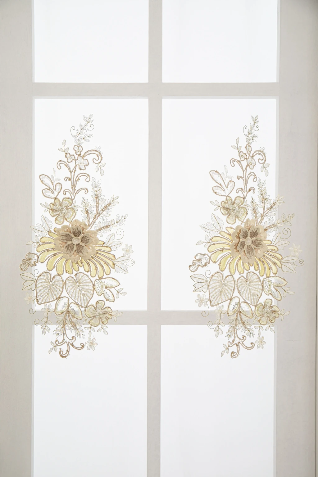 | Nom d'article | Tissu de rideau transparent Shaoxing Textile, rideau de fenêtre en tissu transparent de luxe de style européen avec broderie blanche # |