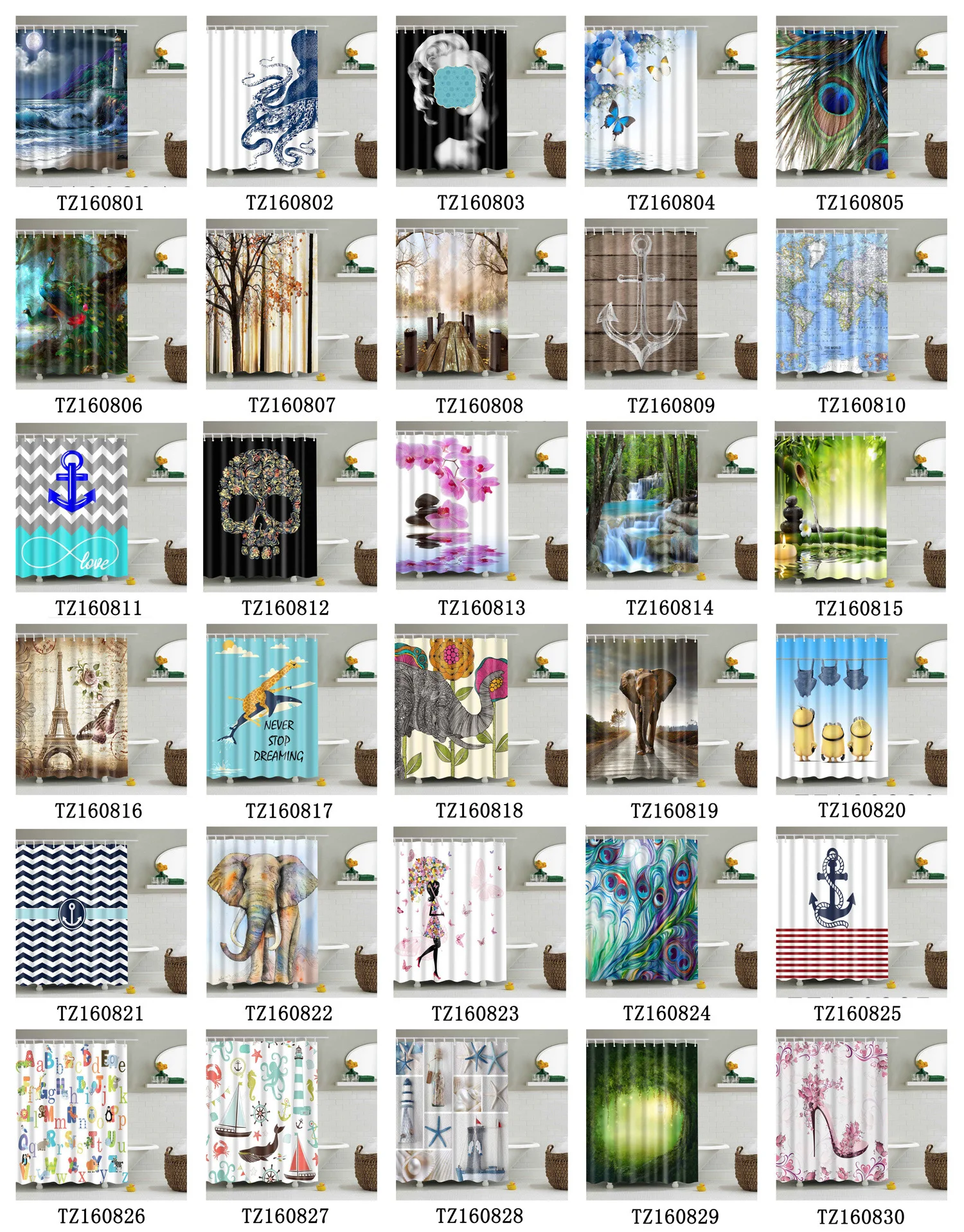 | Nom d'article | Rideau de douche de conception personnalisée de fleur fantaisie, rideaux de douche imperméables de décoration Para El Hogar avec crochets/ |